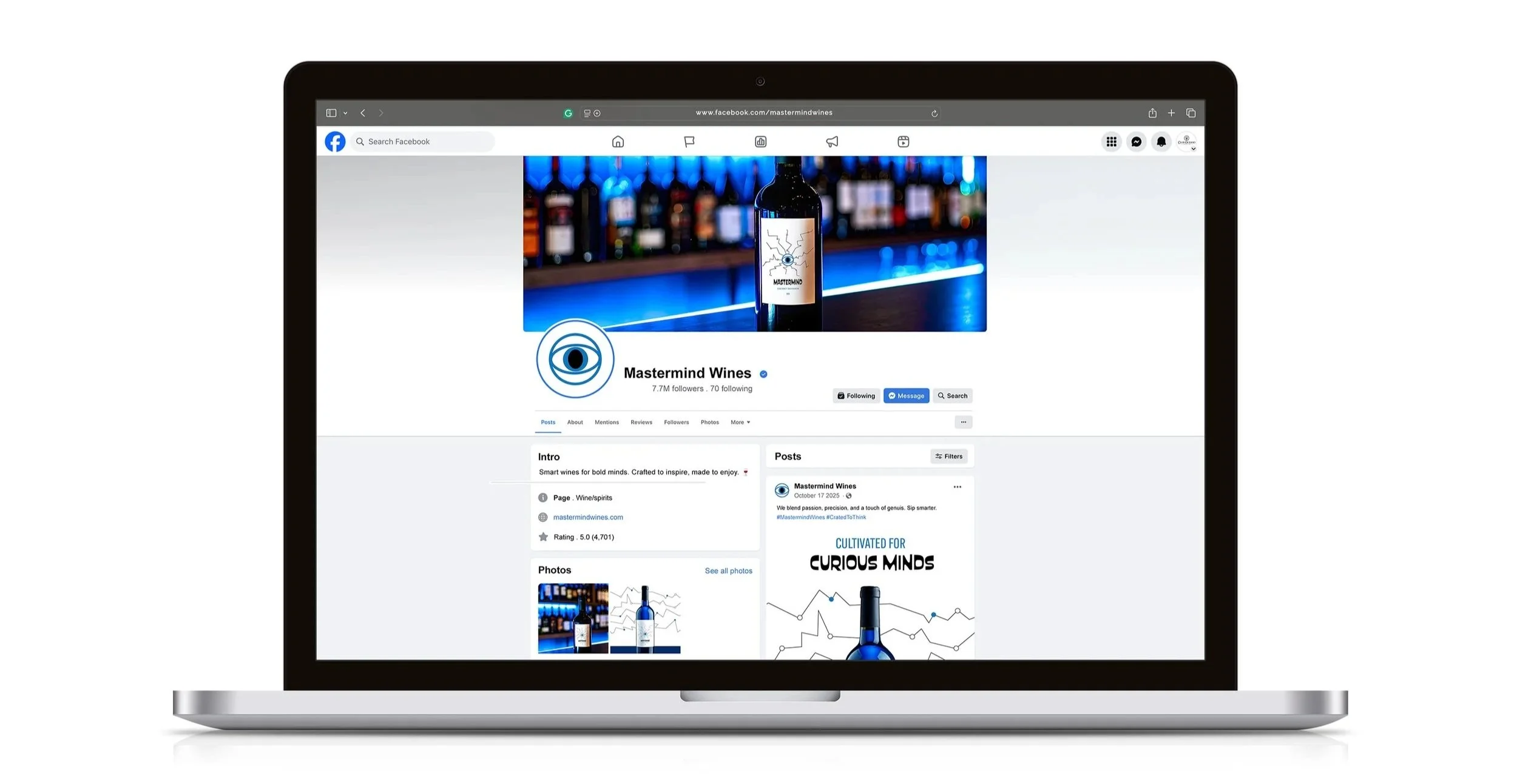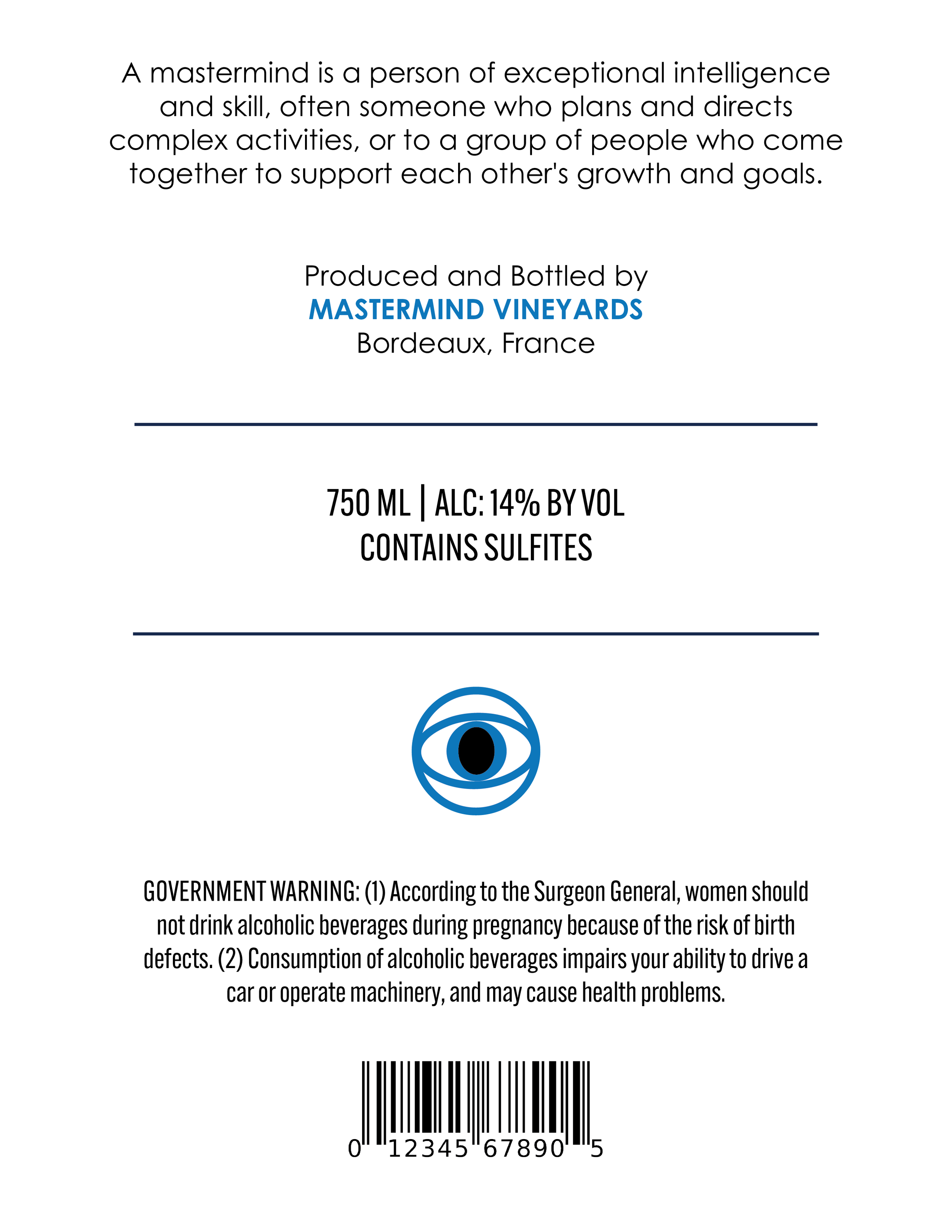 The challenge was to develop a wine brand that appeals to younger audiences—Millennials and Gen Z—who prioritize individuality, intellect, and creativity over tradition. Many wine labels seem outdated or unrelatable, creating a need for a concept that feels modern, bold, and empowering. The design solution redefines what it means to be a “mastermind.” Using abstract geometry, a clean sans serif typeface, and a cool, cyberpunk-inspired color palette, the design represents focus and innovation. The eye-catching geometric graphic and sleek layout draw attention, while the narrative inspires consumers to see themselves as visionaries in control of their craft.